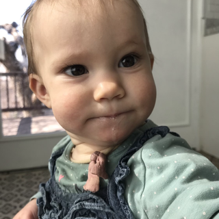 Olive has started running. She is showing an awareness of “no” and has been a bit needy with a few more teeth coming threw this week.